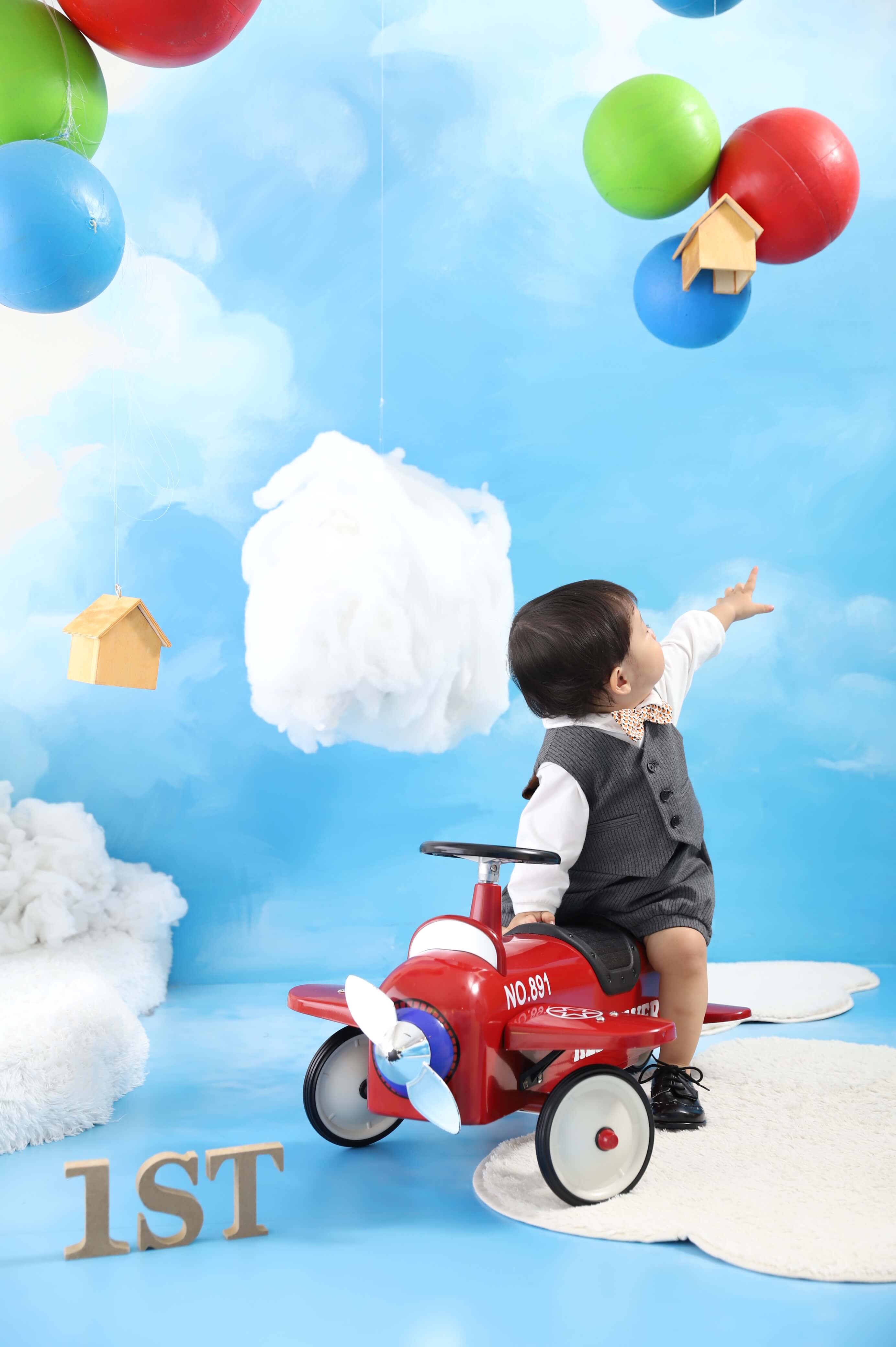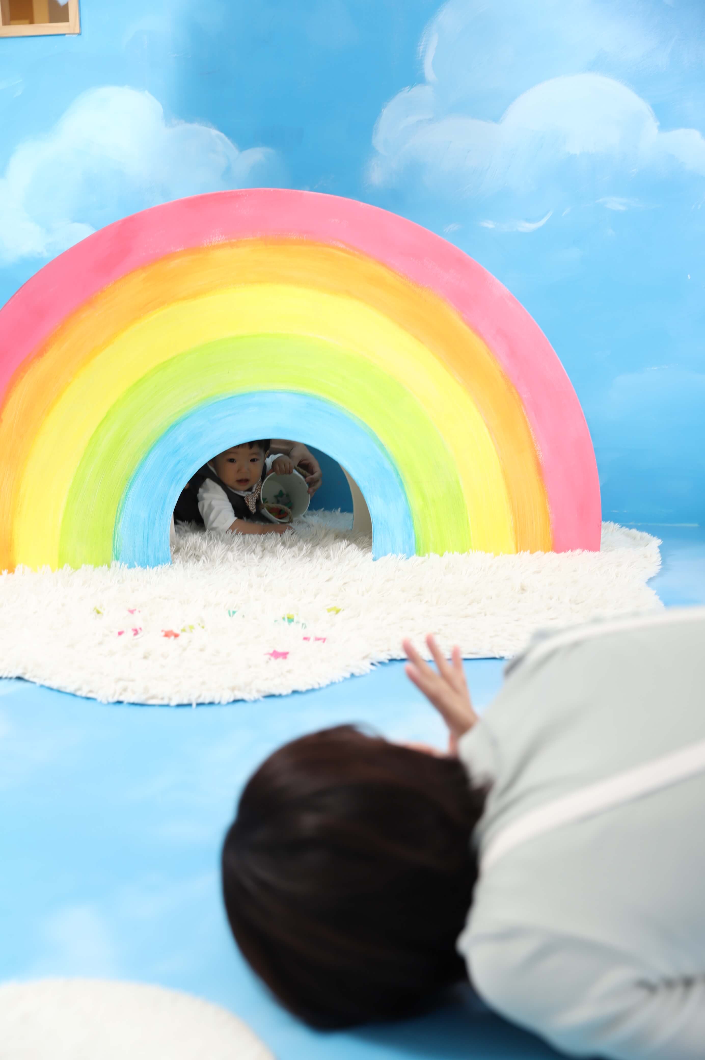 SKYコンセプト:空の旅へようこそ!ふわふわな雲の上で、のびのびと思いっきり遊んじゃいましょう!雲のいす、虹のすべり台、しゃぼんだま、カラフルな傘…楽しく遊べる可愛いアイテムがいっぱいです。パイロット気分も味わえるかも!