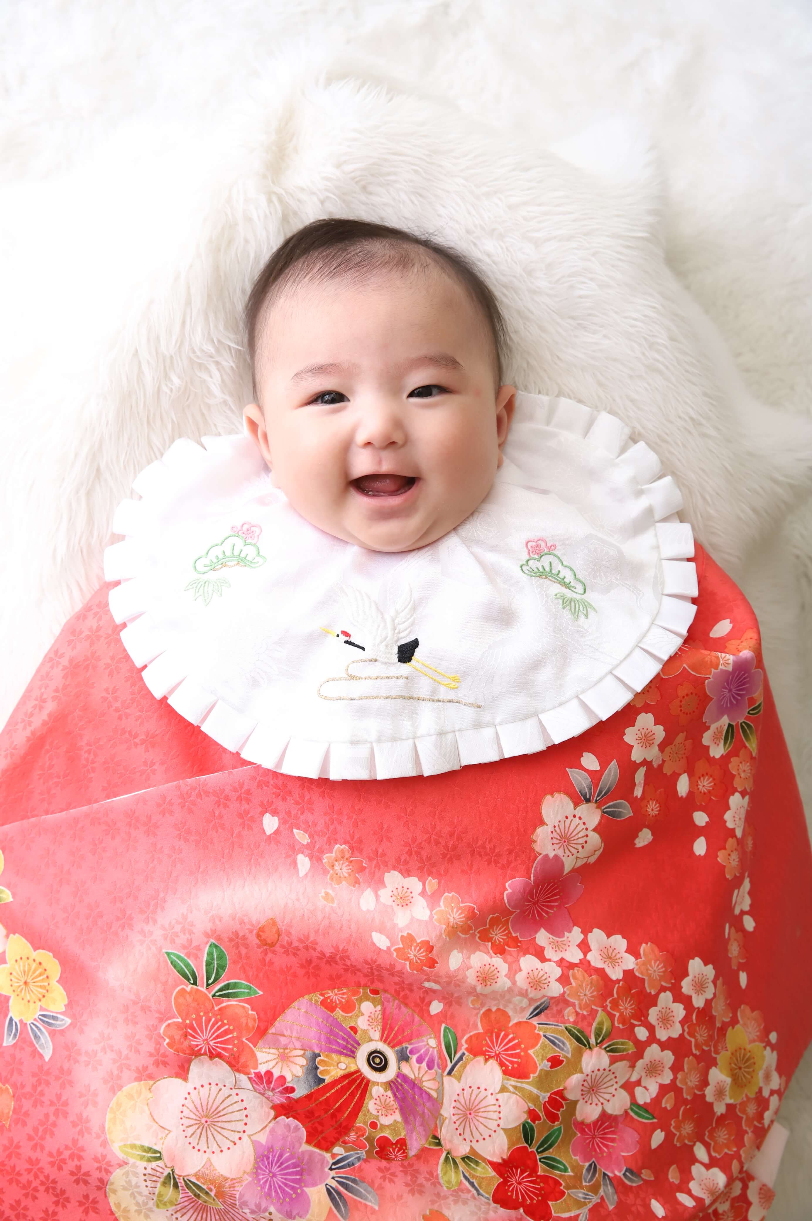 赤ちゃんが嫌がってしまいがちなお着物もニコニコ笑顔でした♡