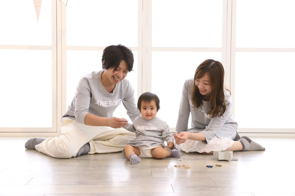あんよももう上手!WHITEスタジオでは、立ってのご家族写真が撮れます!