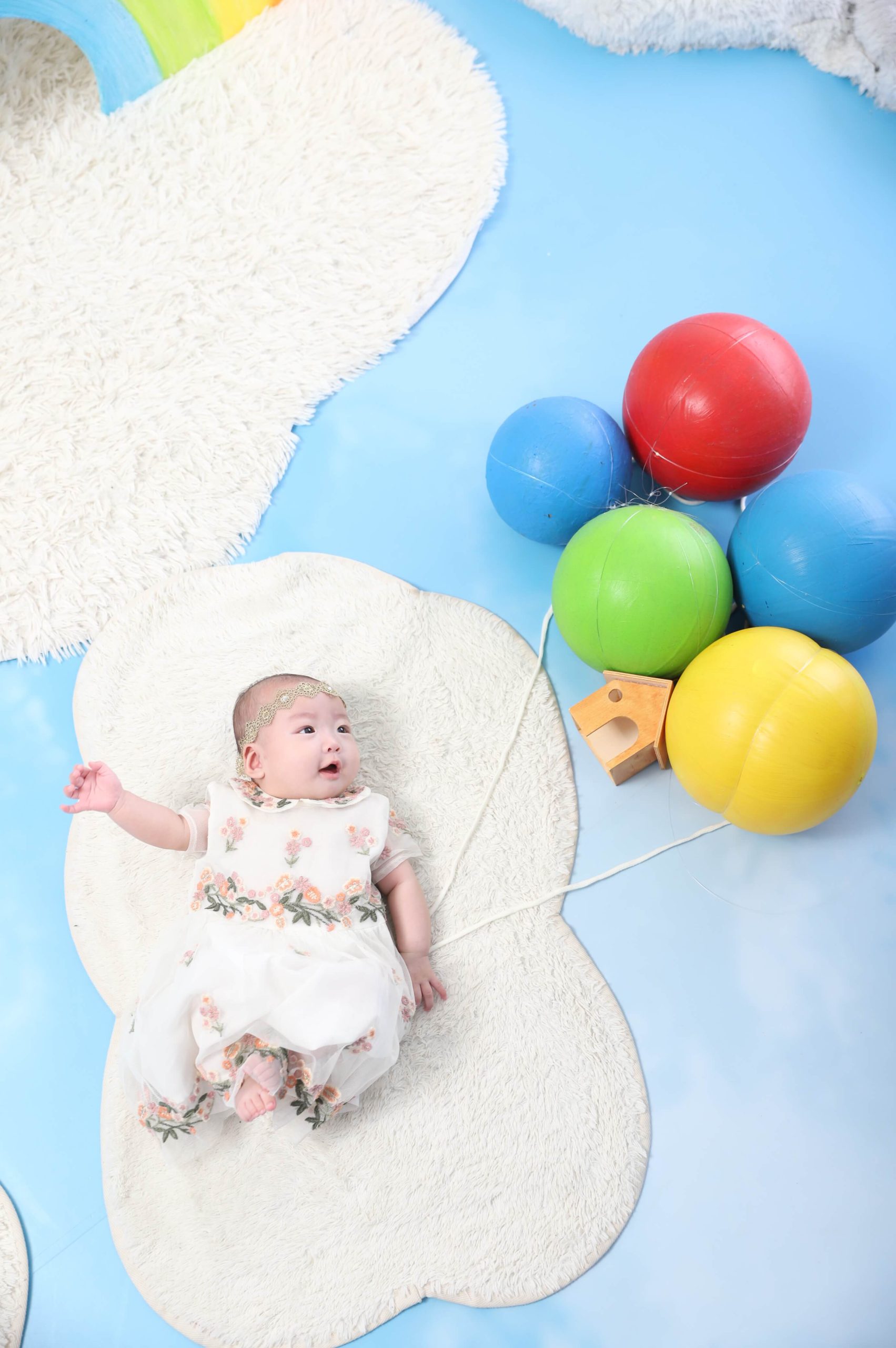 SKYコンセプト:空の旅へようこそ!ふわふわな雲の上で、のびのびと思いっきり遊んじゃいましょう!雲のいす、虹のすべり台、しゃぼんだま、カラフルな傘…楽しく遊べる可愛いアイテムがいっぱいです。パイロット気分も味わえるかも!
