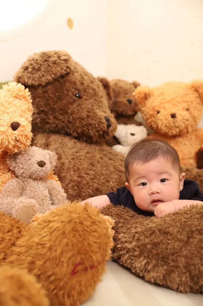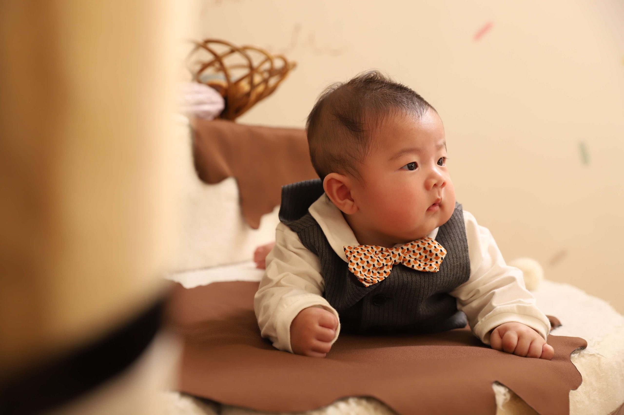 百日のお祝い着でのおすましさん表情もすてきでした♡