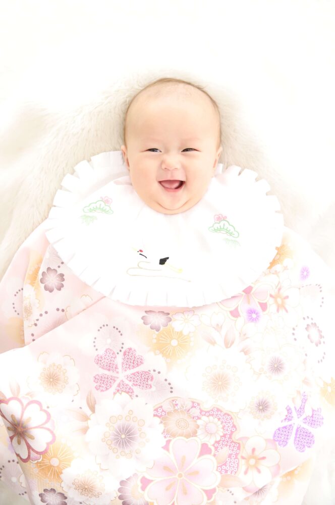 優しい色味で桜柄が華やかで、人気のお祝い着です♡