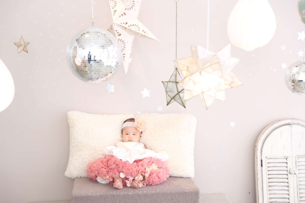 人気のブーケドレスは、百日さんはお座りで撮るのがおすすめです!