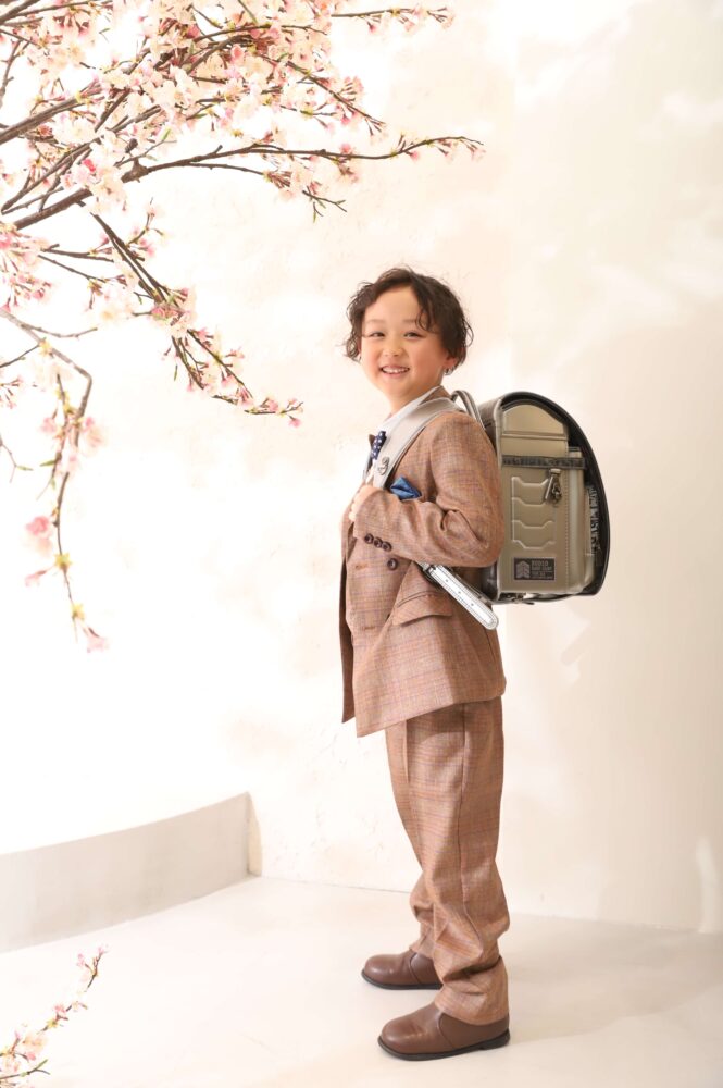 茶色のスーツにシルバーのランドセルでかっこよく決めて来てくれました!