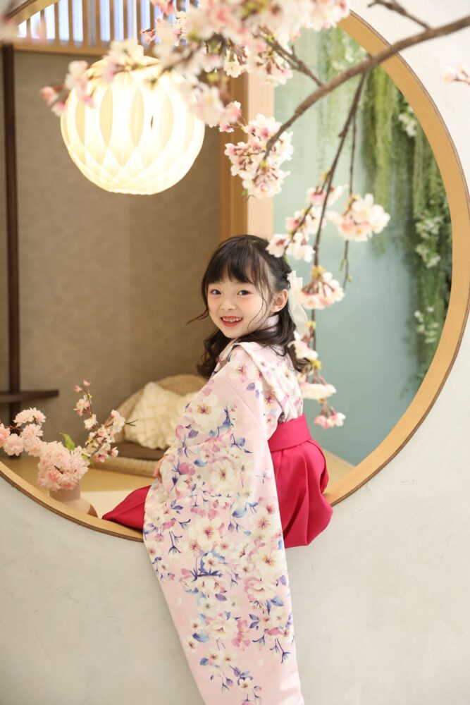 和室の大きな窓から振り返りショットも桜が入ってきて