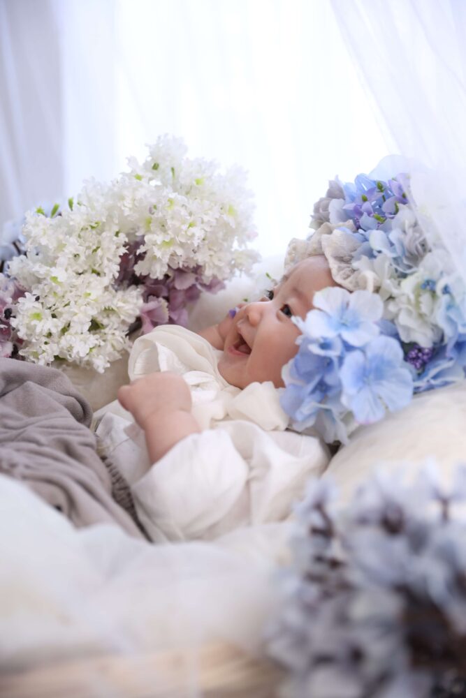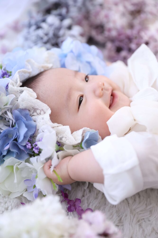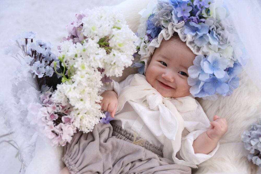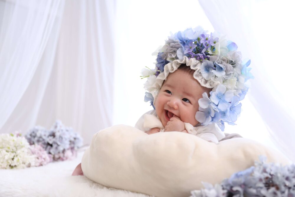 男の子でも可愛くコーディネートができるフラワーボンネットは人気です!