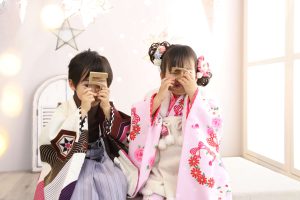 札幌市西野にある写真工房ぱれっと札幌西店で撮影された実際のお客様のお写真を紹介!七五三記念のご姉妹でお越しのお友達紹介。