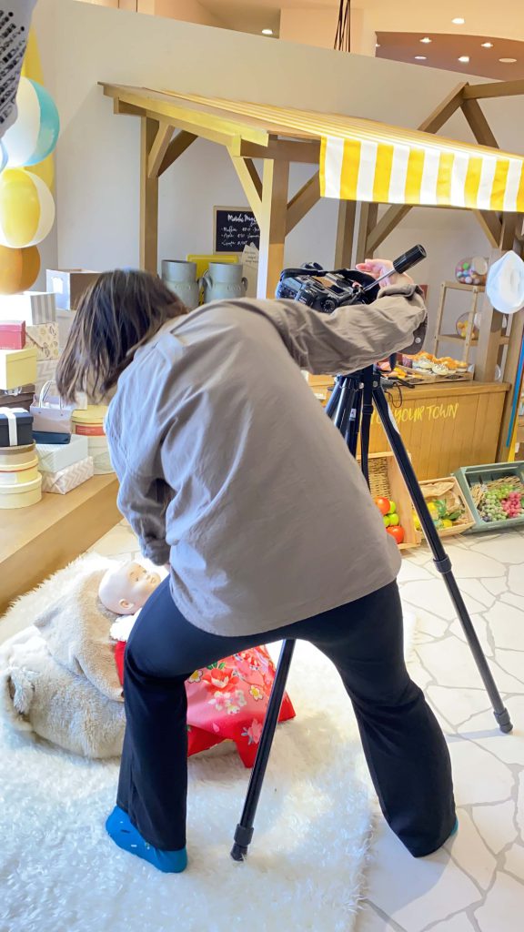 お人形の赤ちゃんに声をかけて本番を意識した撮影練習を繰り返していきます!