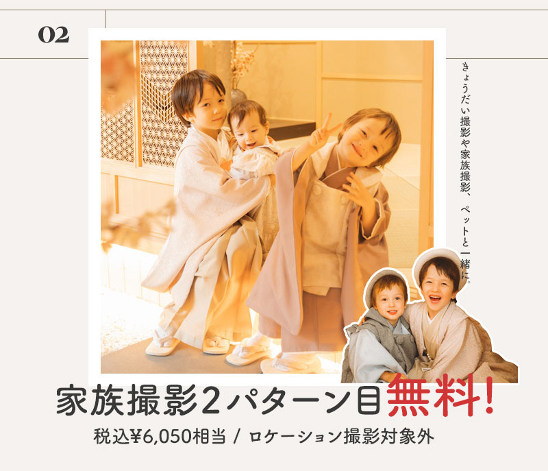 通常1プランに1パターンの家族撮影が2パターン目も無料!