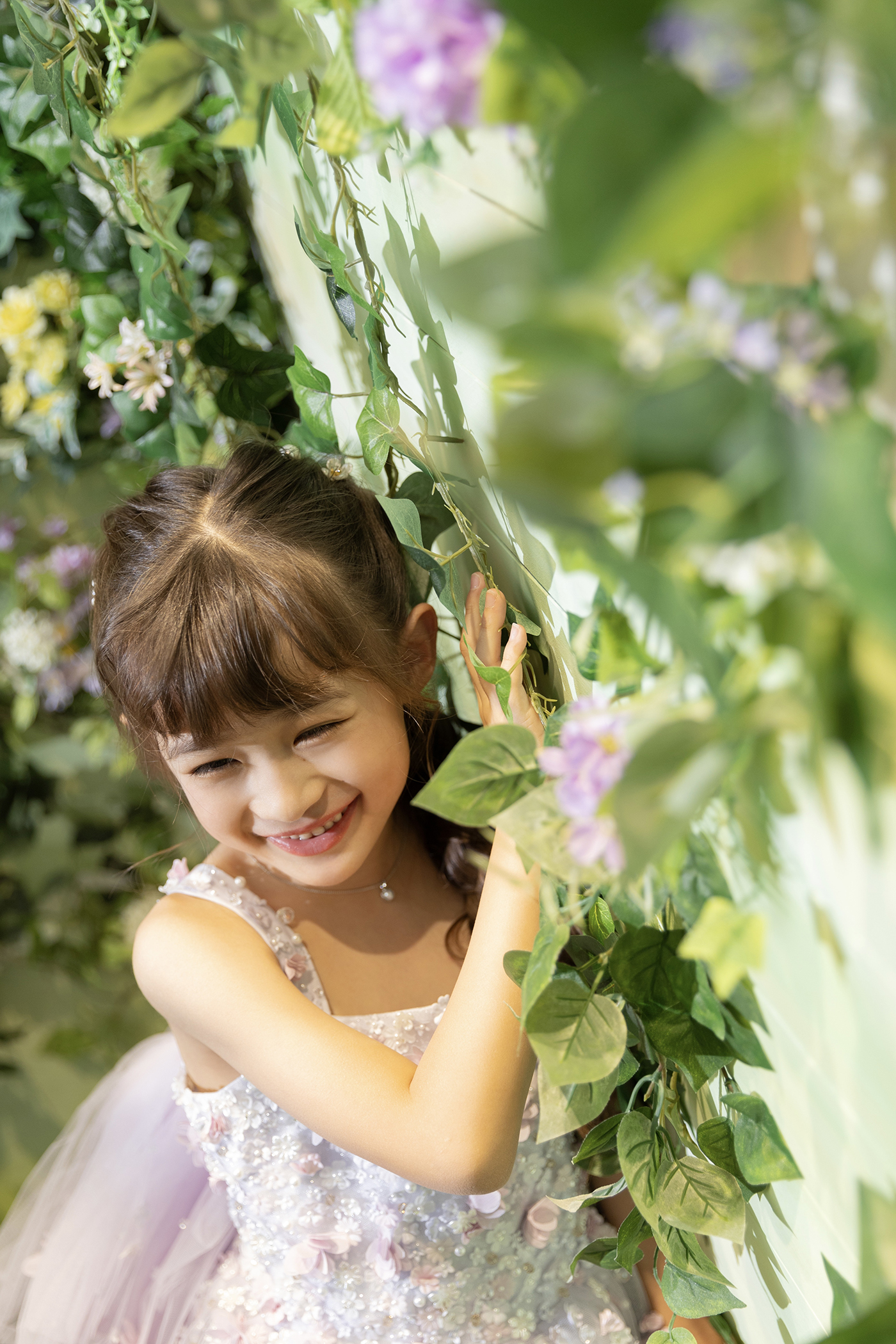 小物にお花を持ってもらい、髪飾りにもお花を使用するとまるでお花の精のようです。