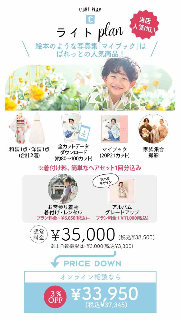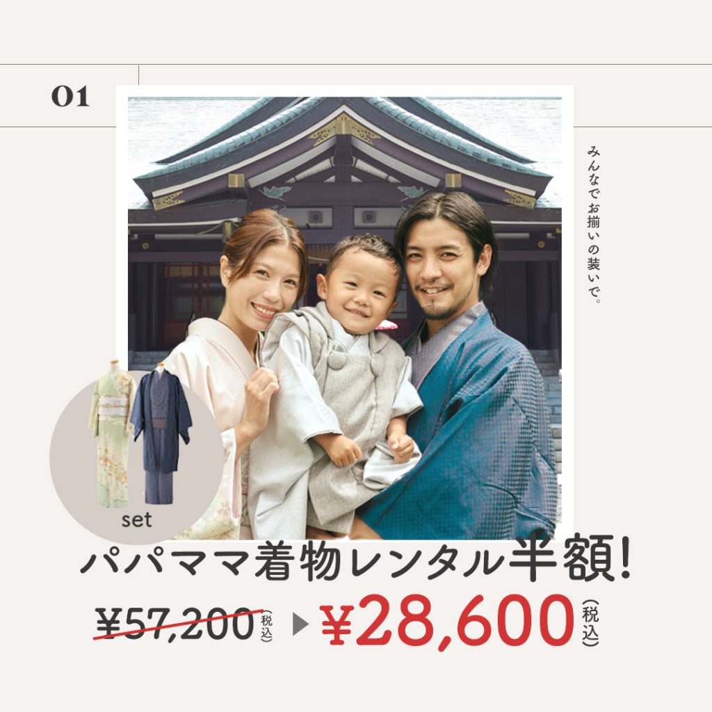 2.ママ着物レンタル(33,000円)でパパ着物レンタル分が無料!!