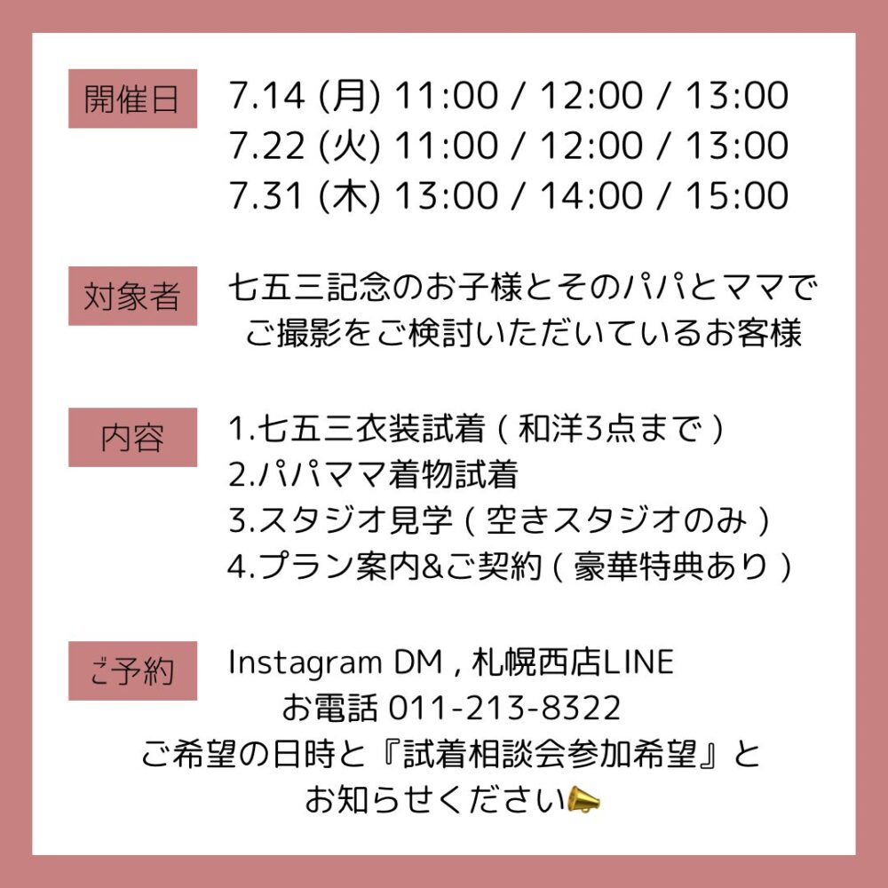 2025/07/07【札幌西店】753FAIR!試着相談会を開催します👘🌷