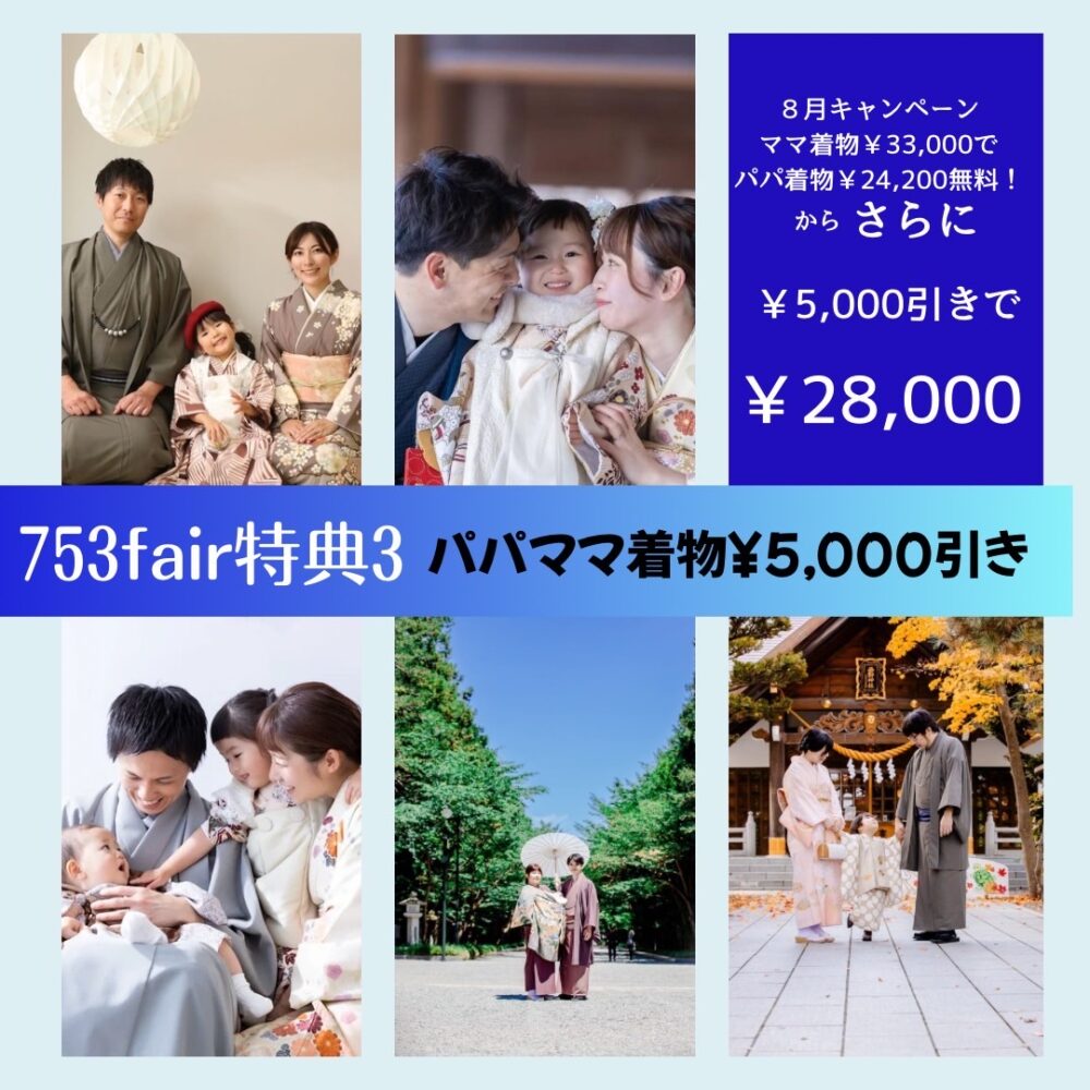 8月キャンペーンのママ着物33000円でパパ無料!から
