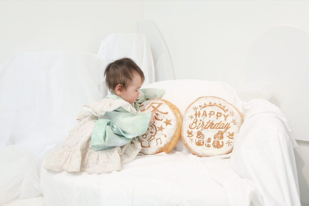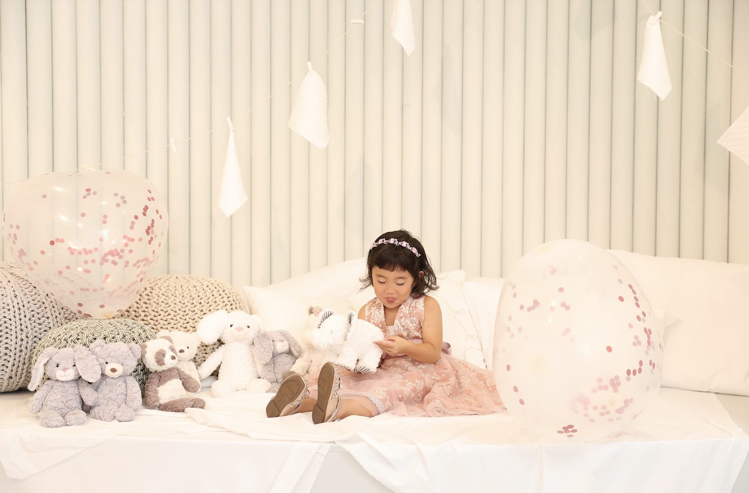 お子様が生まれた時の産着や、バースデー記念に数字のバルーン、お子様の大事なお友達のぬいぐるみなど。。。