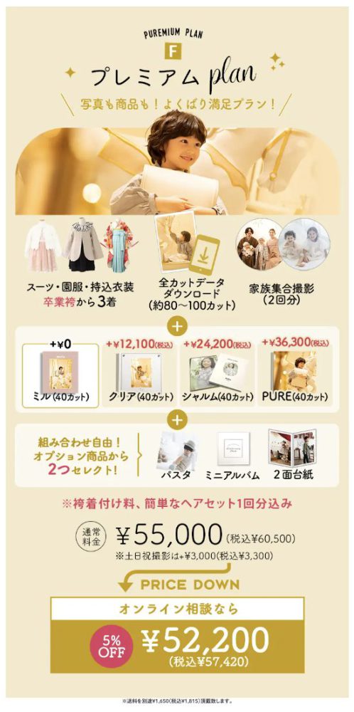 プラス店舗にしかないデザインアルバムやオリジナル商品がついた充実プランです!