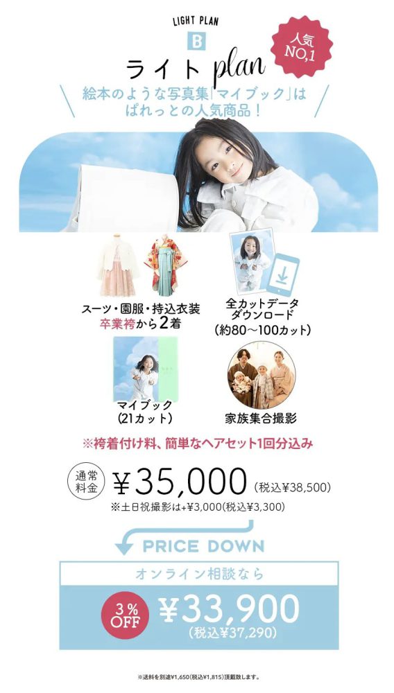 オンライン相談でご成約&2月撮影の方限定で3,300円お得に土日祝日撮影が可能!
