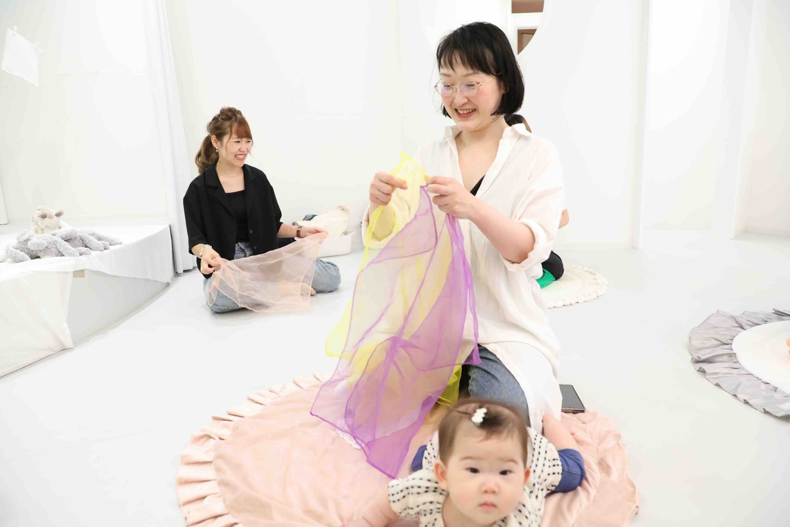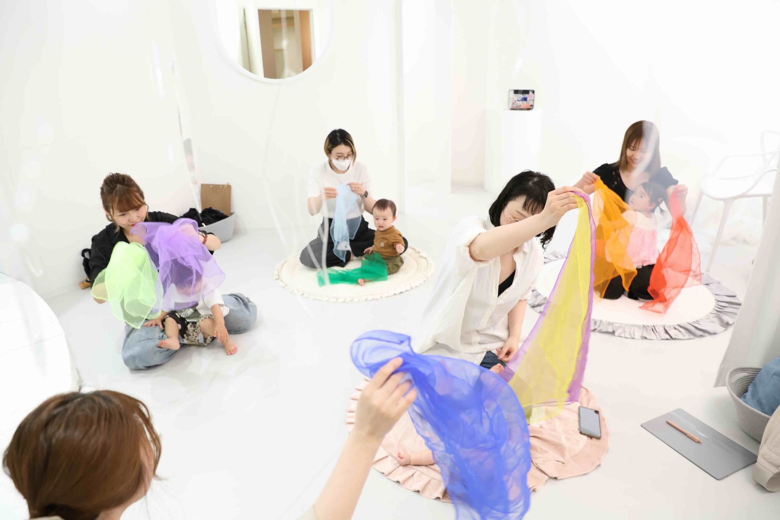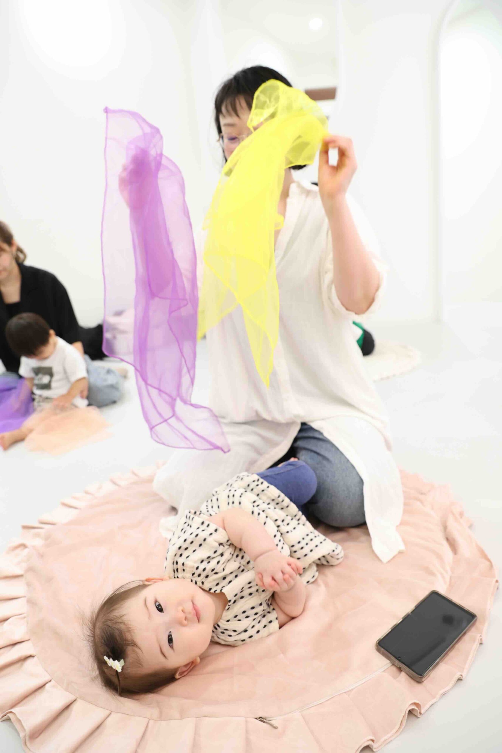 自分で自由にゆらすのも、揺れているカラフルなスカーフを見るのもとっても楽しいです♩