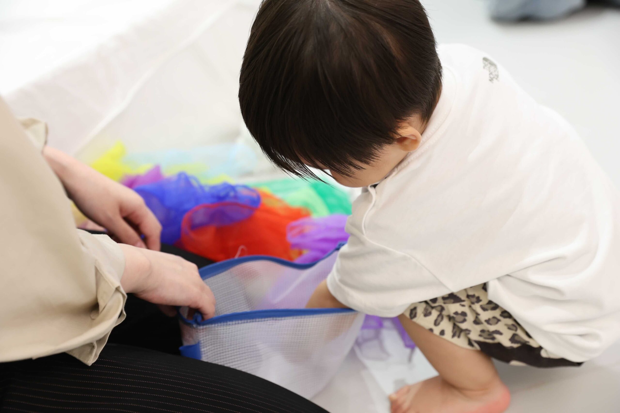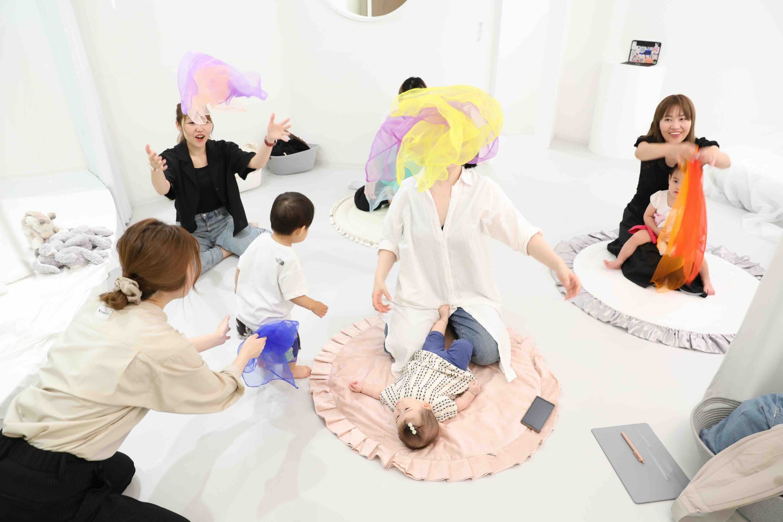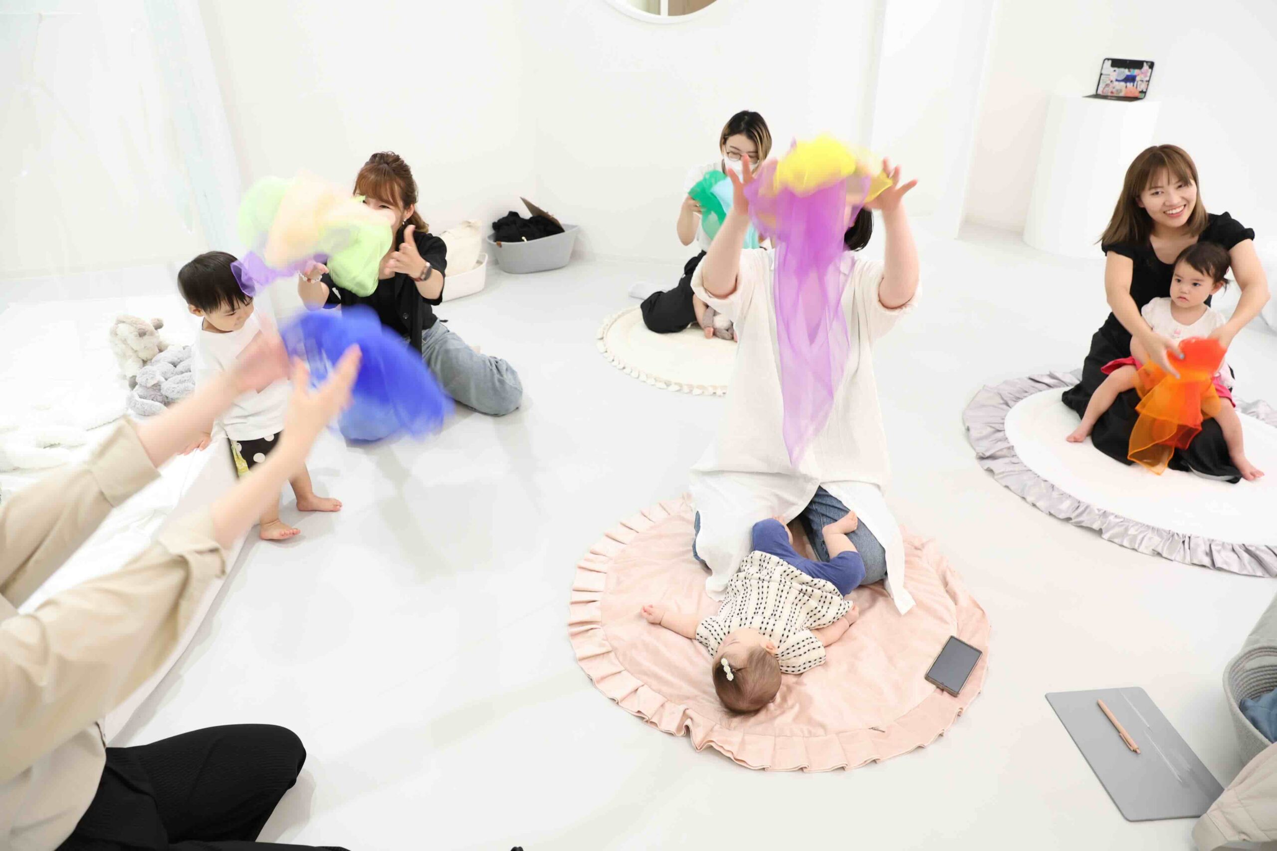 自分で自由にゆらすのも、揺れているカラフルなスカーフを見るのもとっても楽しいです♩