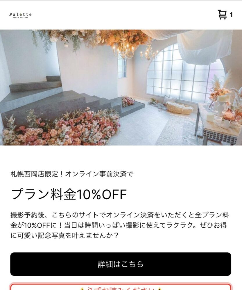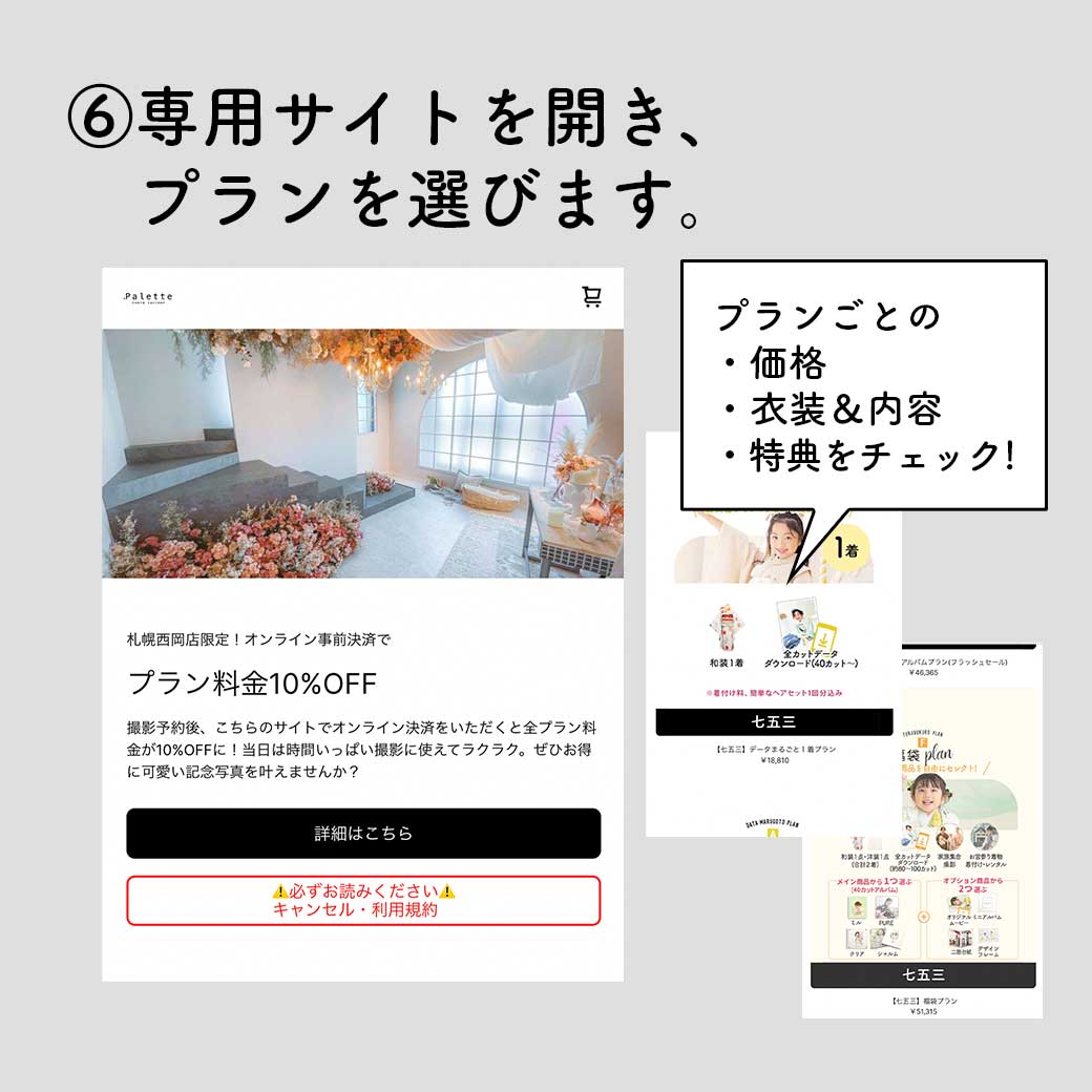 撮影予約後、専用サイトでオンライン決済をいただくと全プラン料金が10%OFFにて申し込みが可能です!