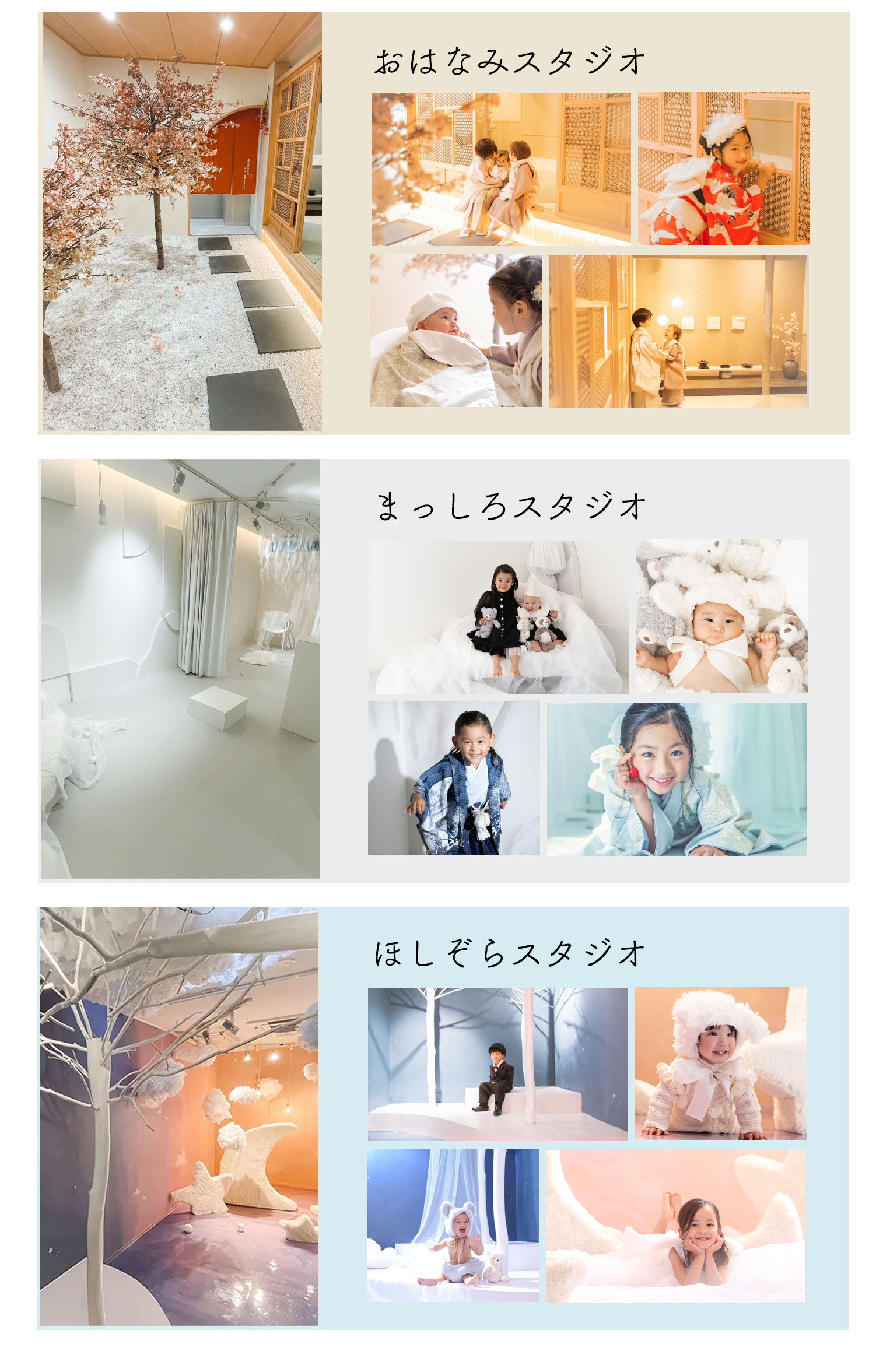 全部で5つのスタジオから好きなところを選んで撮影することができます!
