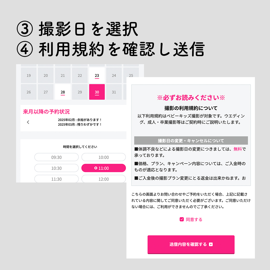 最短で撮影予約から5〜10分程度でご決済まで進められて、あとは撮影当日を迎えるだけ!