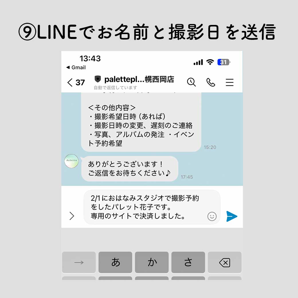 あとは西岡店直通LINEに申し込んだ撮影日とお名前をお伝えください。