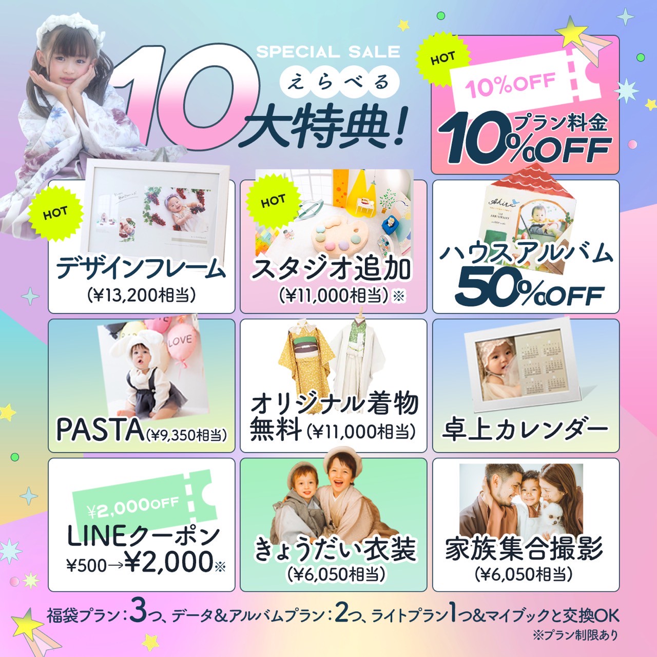 お誕生日の前後3週間に撮影いただくと嬉しい特典がたくさん!!