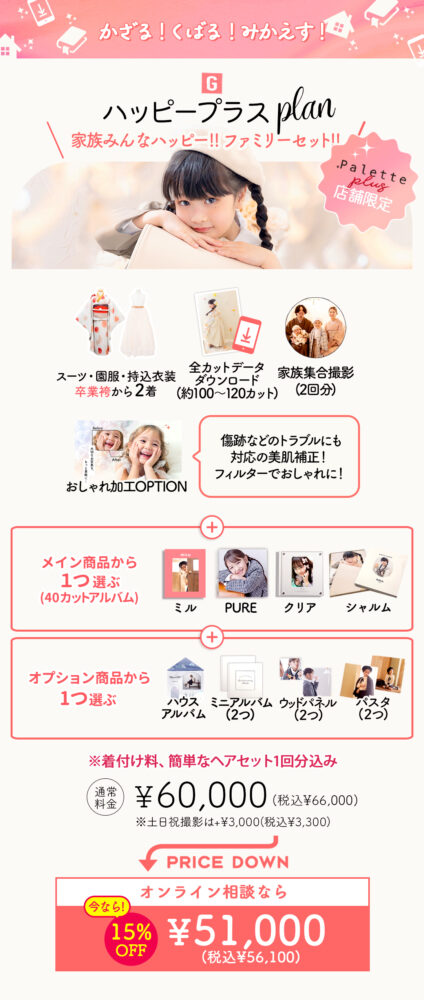 ハッピープラスプランですと追加料金なしで集合撮影が2回できちゃうんです👀