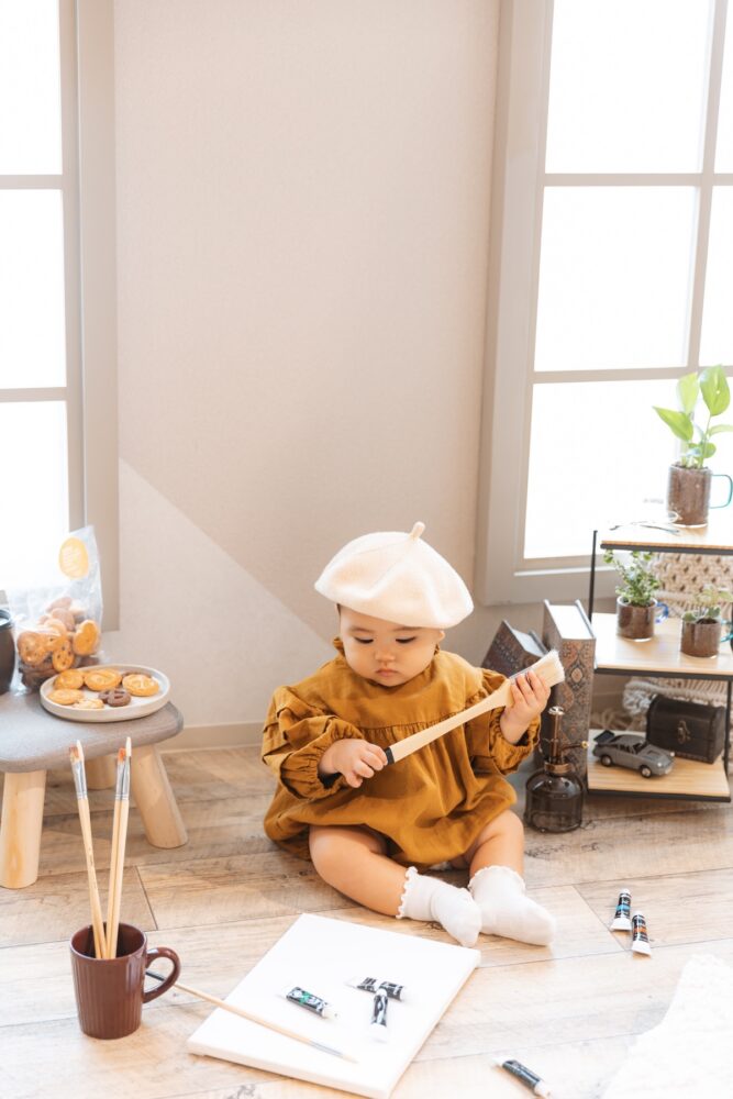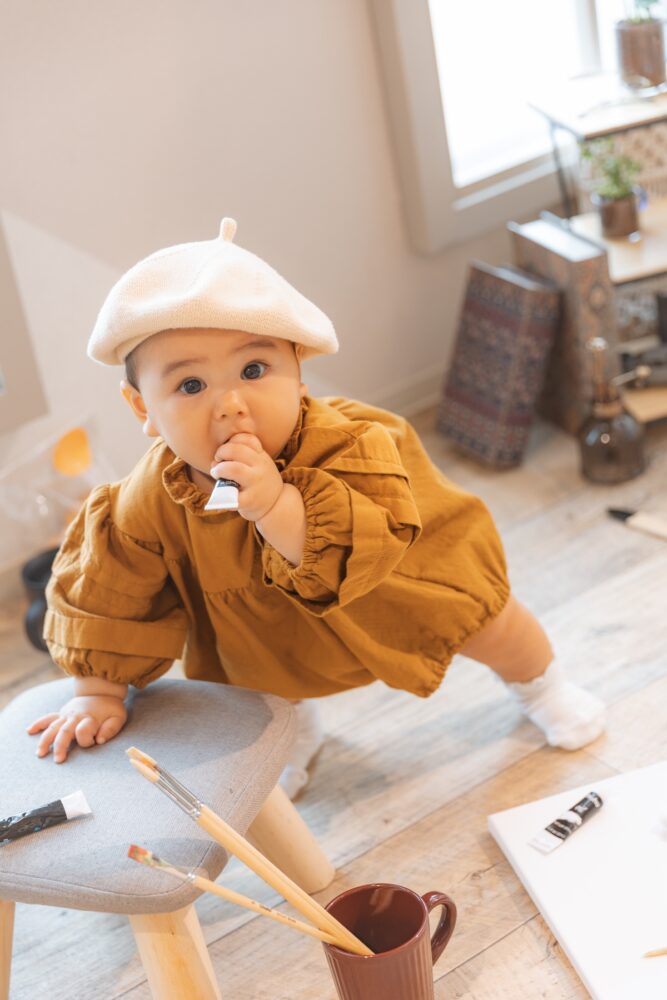 今回は「ナチュラルスタジオ」で芸術家になりきった赤ちゃんを演出!