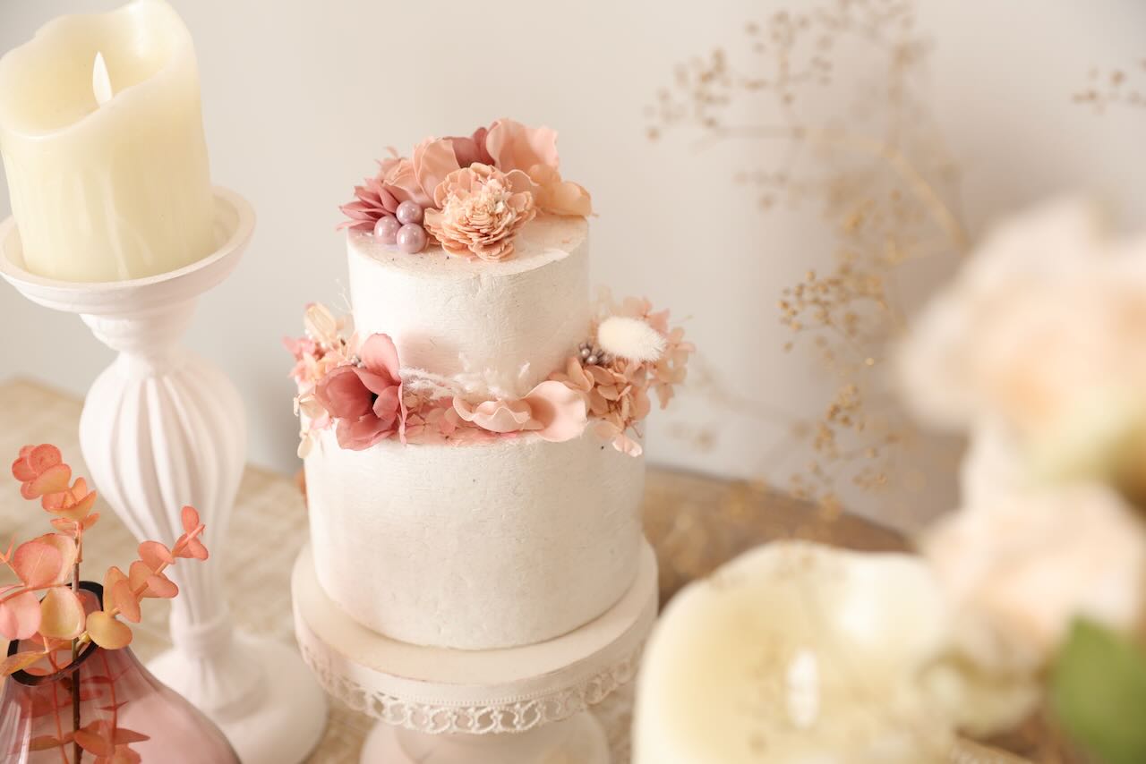 ドライフラワーやケーキなどが置いてあるテーブルがあるのが特徴のお部屋です!