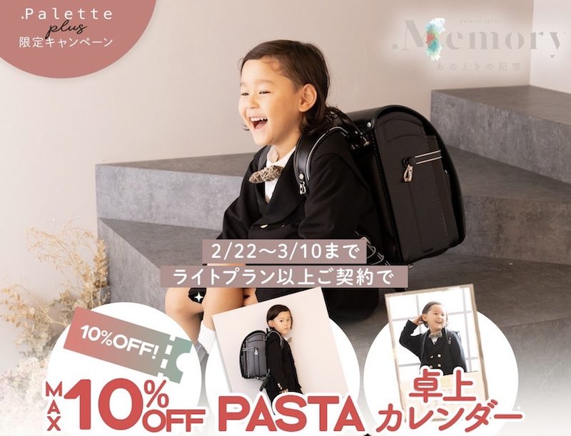 Palette Plus 店舗限定で緊急キャンペーンが開始!! 4月までの撮影をご検討されている方はぜひこのお得な期間にご成約されることをオススメ!! まずはお気軽にオンライン相談のご予約をお待ちいたしております!