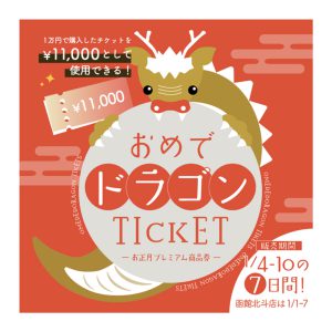 2024年祝辰年として、ぱれっとから1万円で1万1千円分使える、おめでドラゴンチケット販売が決定!! 北海道の全店舗でご利用可能なプレミアム商品券! 今後ぱれっとでご撮影などご検討されてる方必見です!