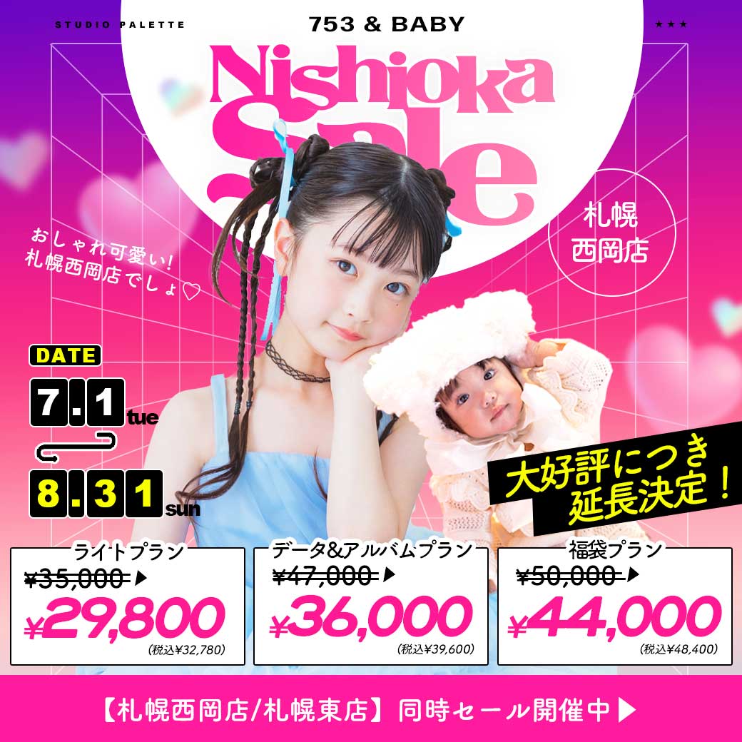 こんにちは!palette plus西岡店です! この度、西岡店ではより多くのお客様にご撮影いただけるよう撮影のご予約枠を増枠しました! 日程が空いていなくて検討してしまったお客様は再度ご撮影日ご相談くださいませ! 9〜10月は大変埋まりやすくなりますのでご予約はお早めに!