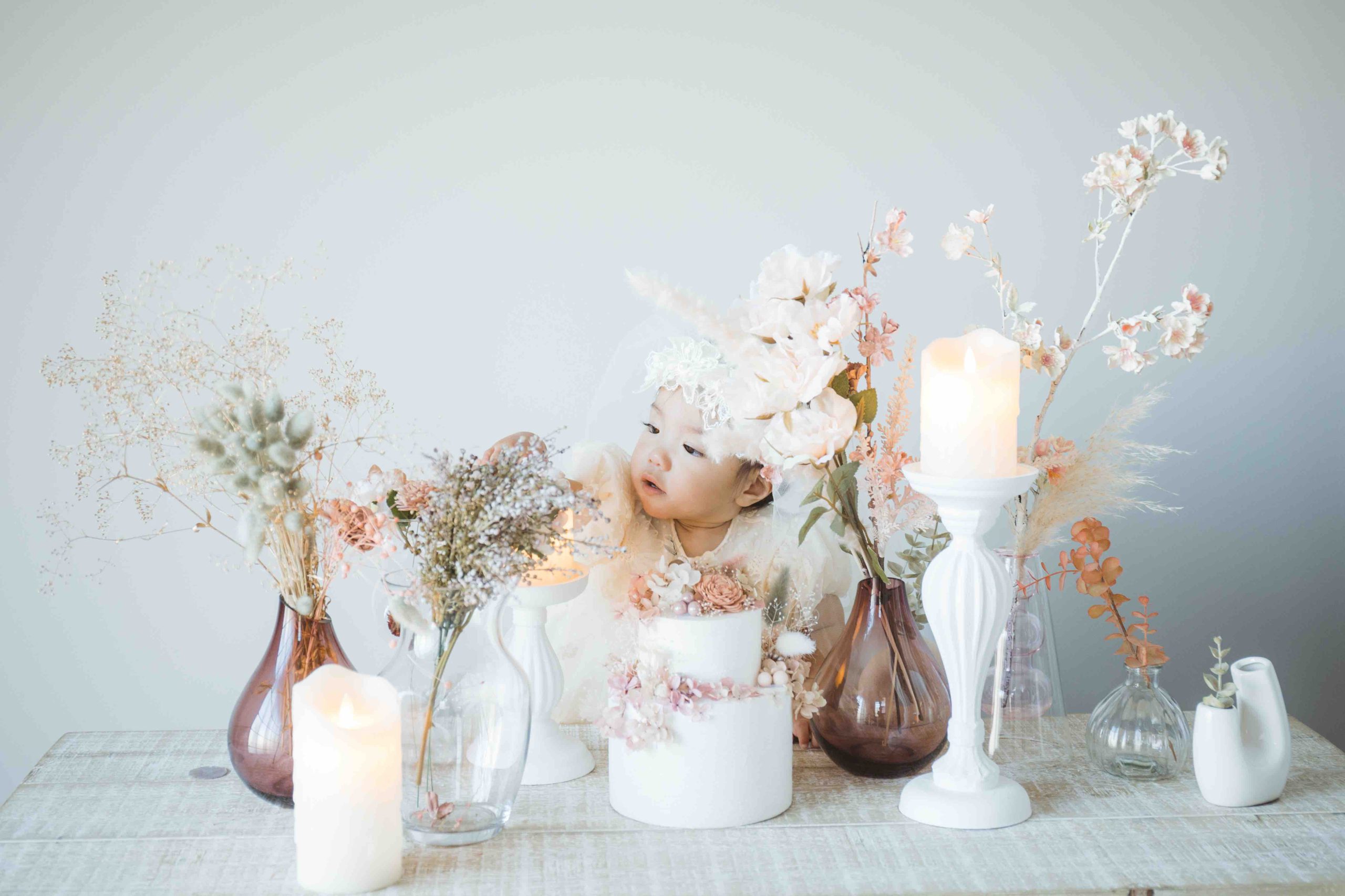 オシャレなバースデーフォトを撮るなら、360度こだわりが詰まった個別スタジオ完備のpalette+plus西岡店で♡ 1歳記念にぴったりな最新のお衣装も!