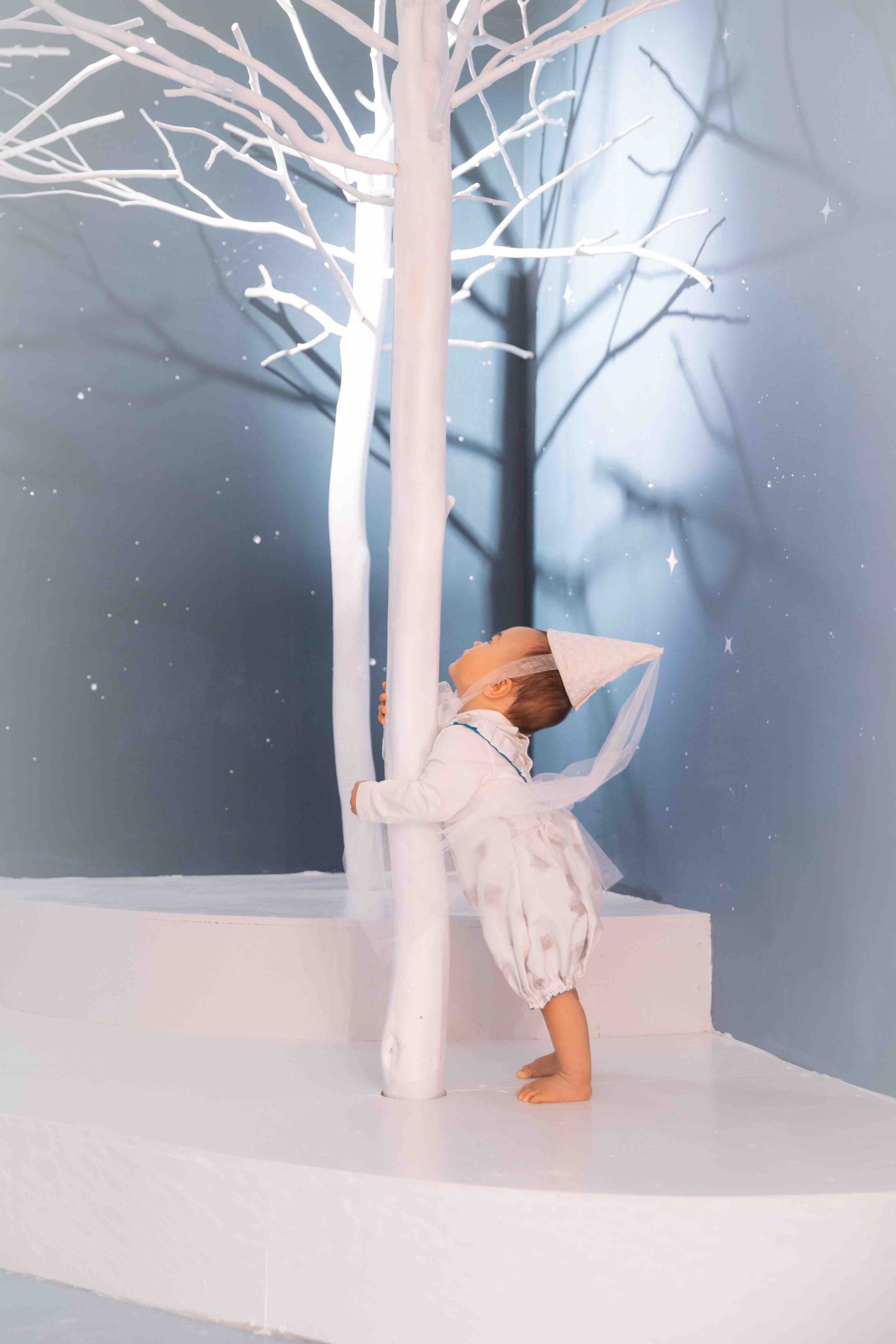 夜空の中でまっしろな木に捕まって、非日常の雰囲気を・・・♡