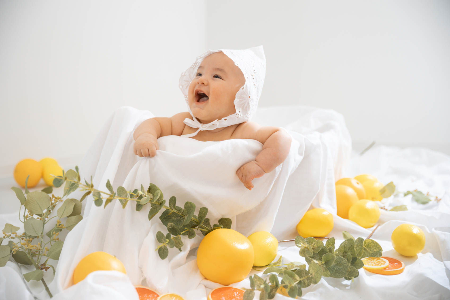 人気のなりきりBABY、フルーツBABY、フラワーボンネ。いましかないむちむちな手足やおなか。記憶と写真に可愛く残せます!