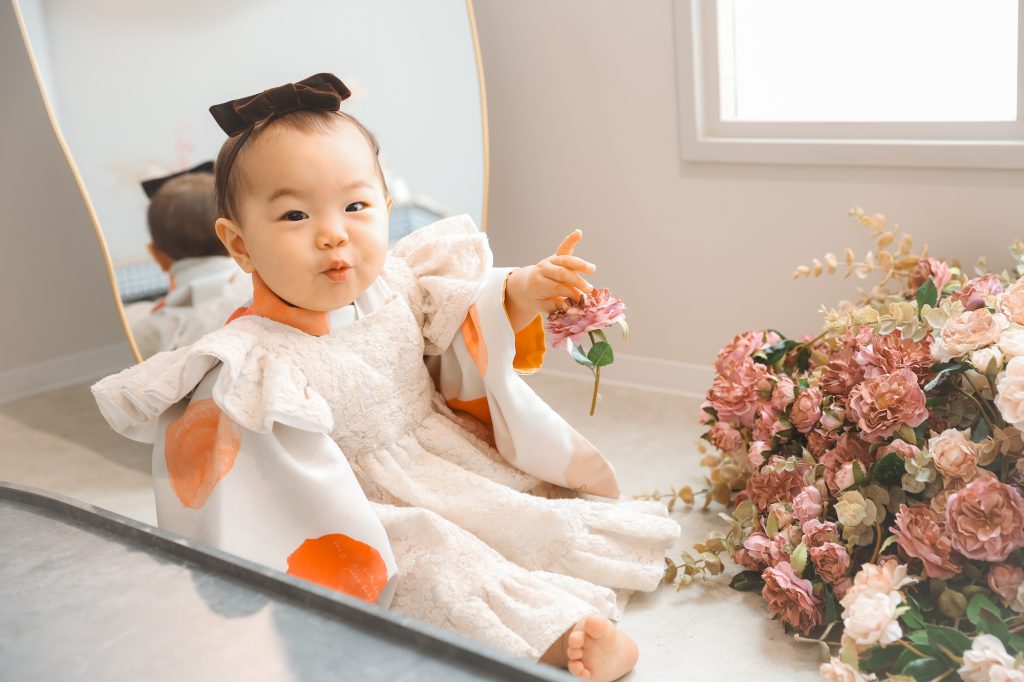 ベビーキッズ撮影を考えているお父さんお母さん必見!はないろスタジオで撮影した1歳女の子の写真をご紹介!! 今回ははないろスタジオにある小物は何があるのかをご紹介します! 大人気のスタジオとなっておりますのでぜひ最後までご覧ください✨
