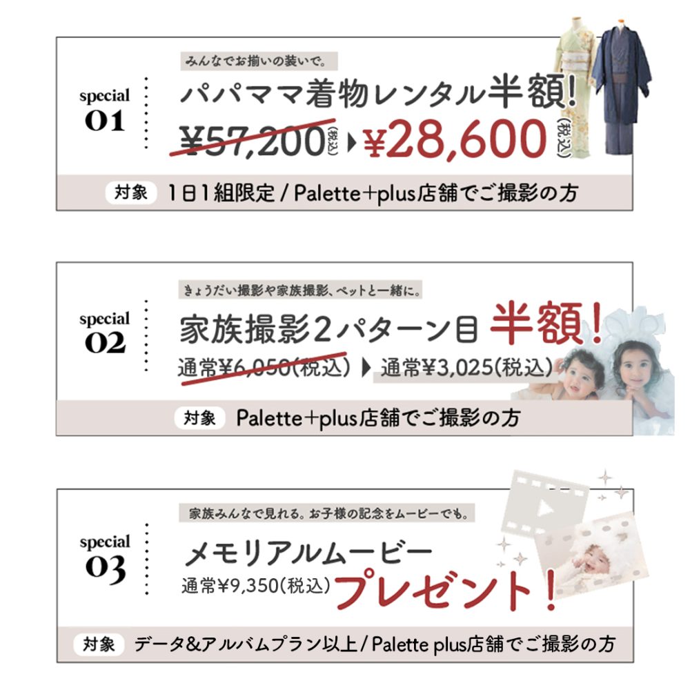 ※1歳記念4着撮影は、札幌西岡店は対象外となります。