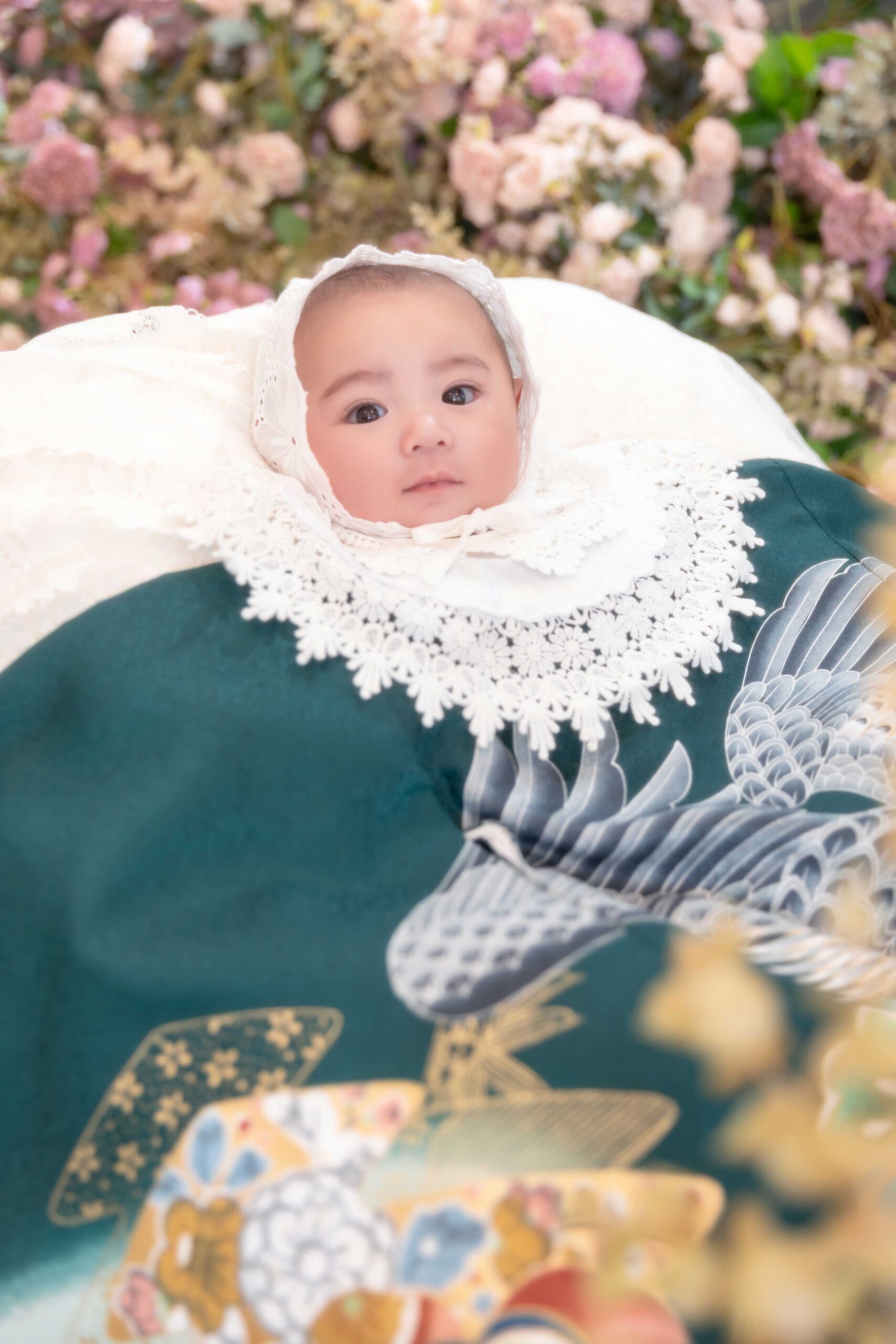 フラワースタジオから百日さんお祝い着のビジュアルが登場です🌸華やかにお祝いするならこちらのスタジオがおすすめ♪