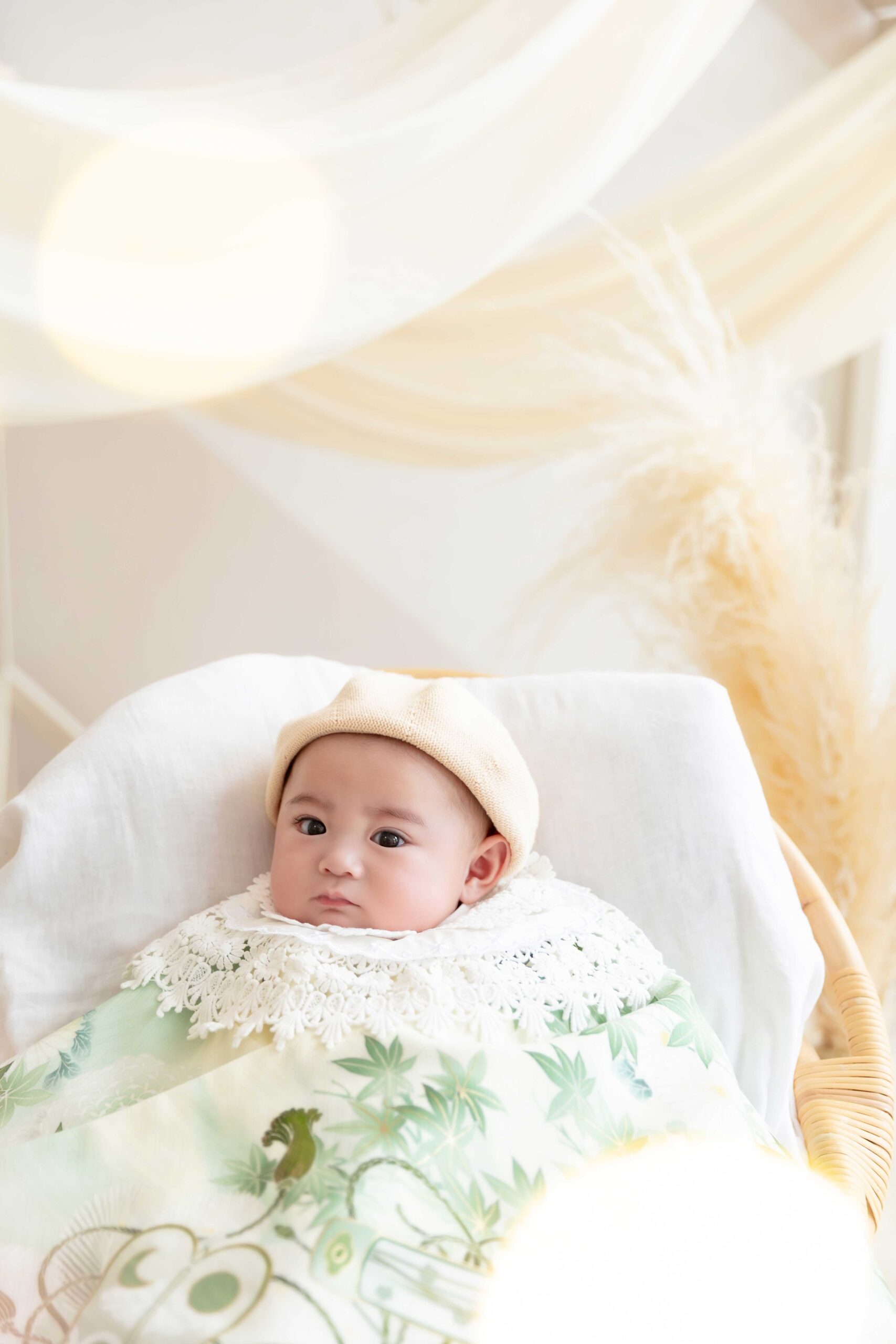 こちらはナチュラルスタジオの百日お祝い着ビジュアルです✨柔らかな光が赤ちゃんの魅力を引き立てること間違いなし♪