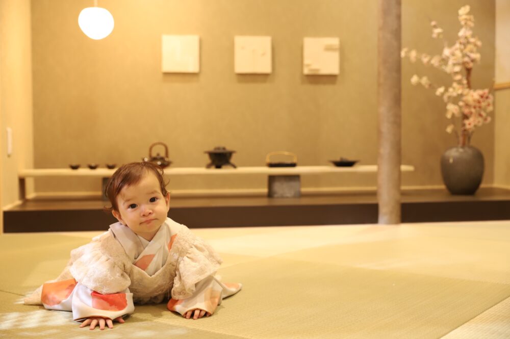 当店では、百日〜1歳さんの赤ちゃんでも着れる和装をご用意しております!