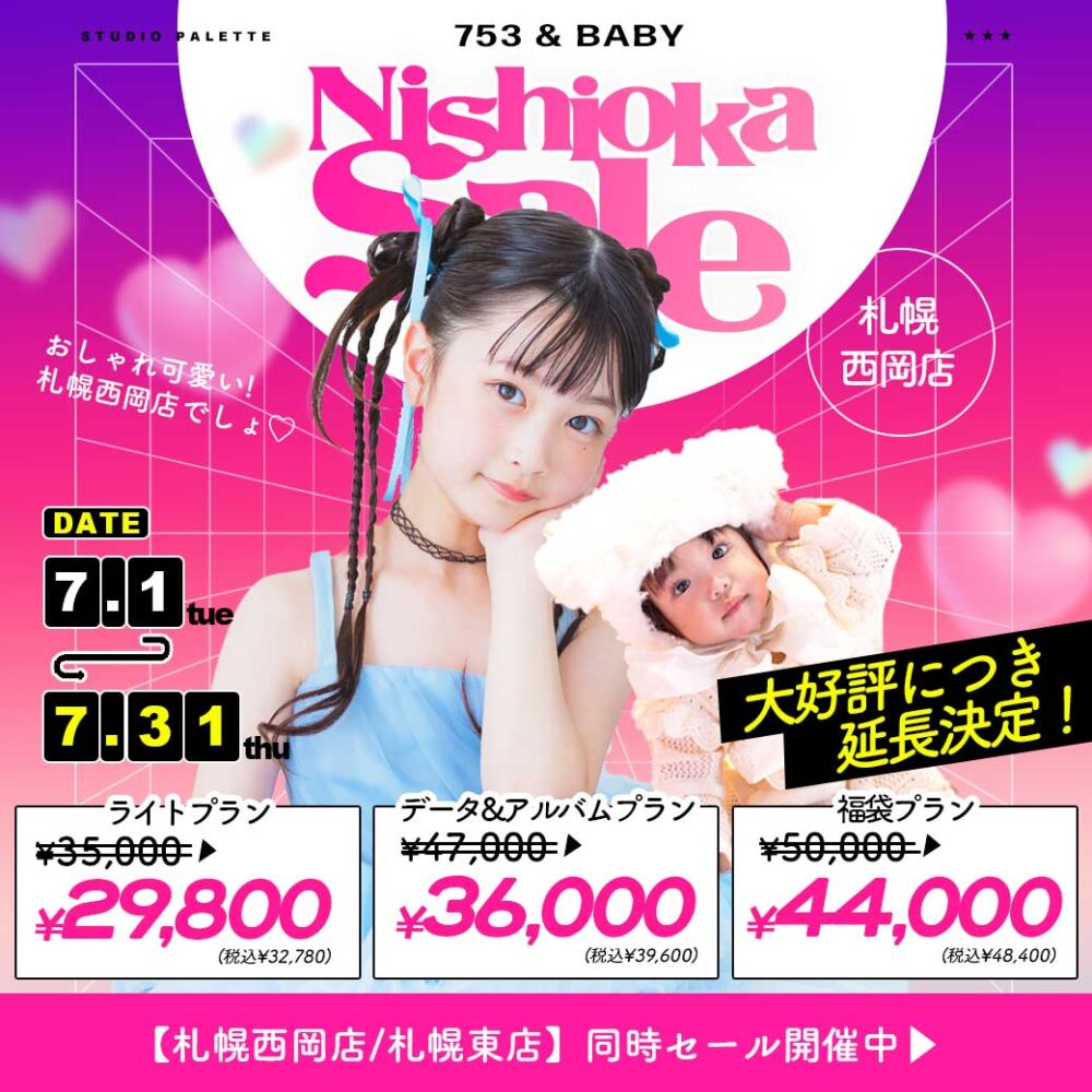 palette+plus西岡店・東店限定で7月末までにご契約いただきますと、