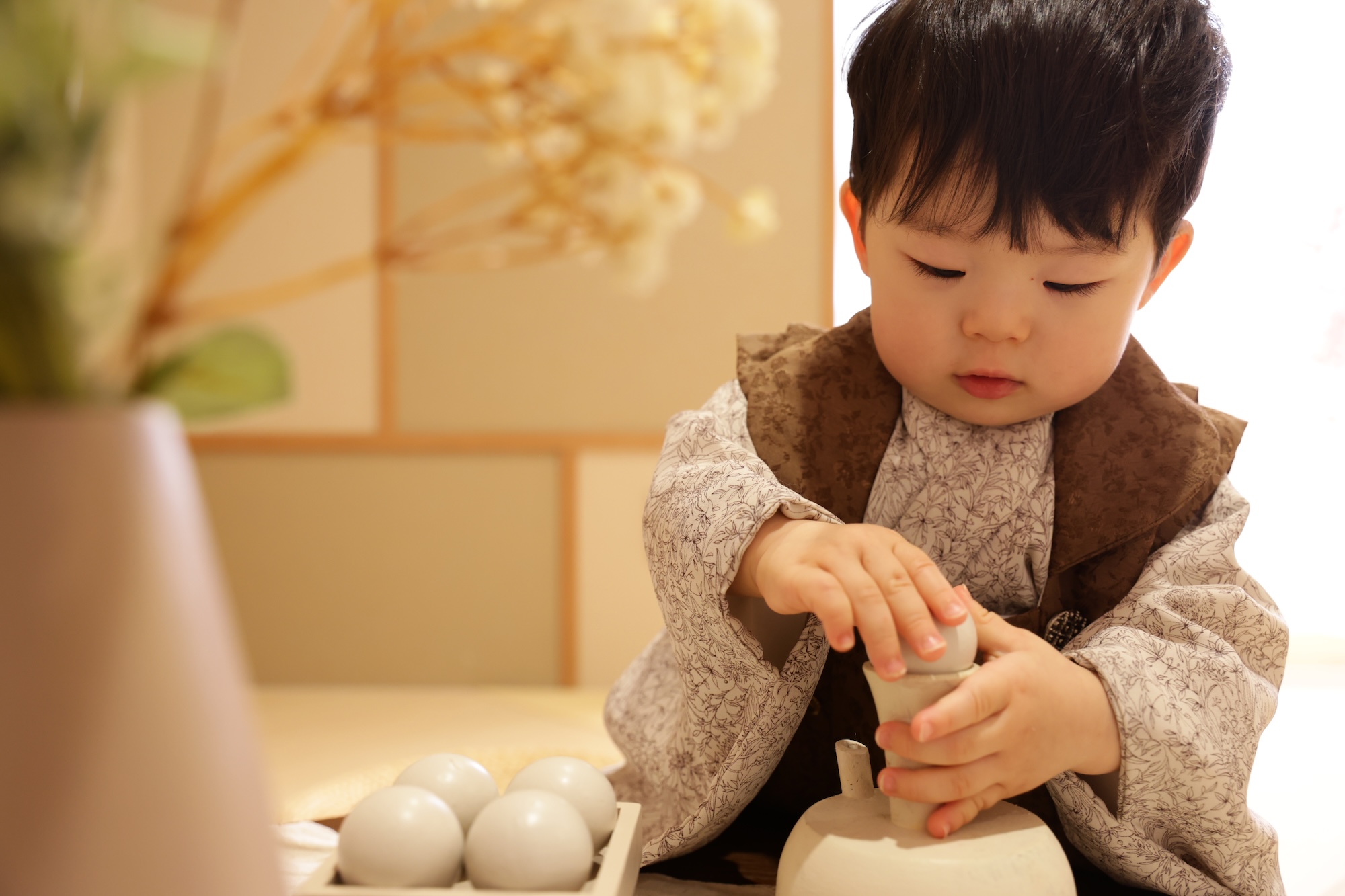 和室でゆったり家族の時間を過ごしているような空間でお写真を撮影していきます。