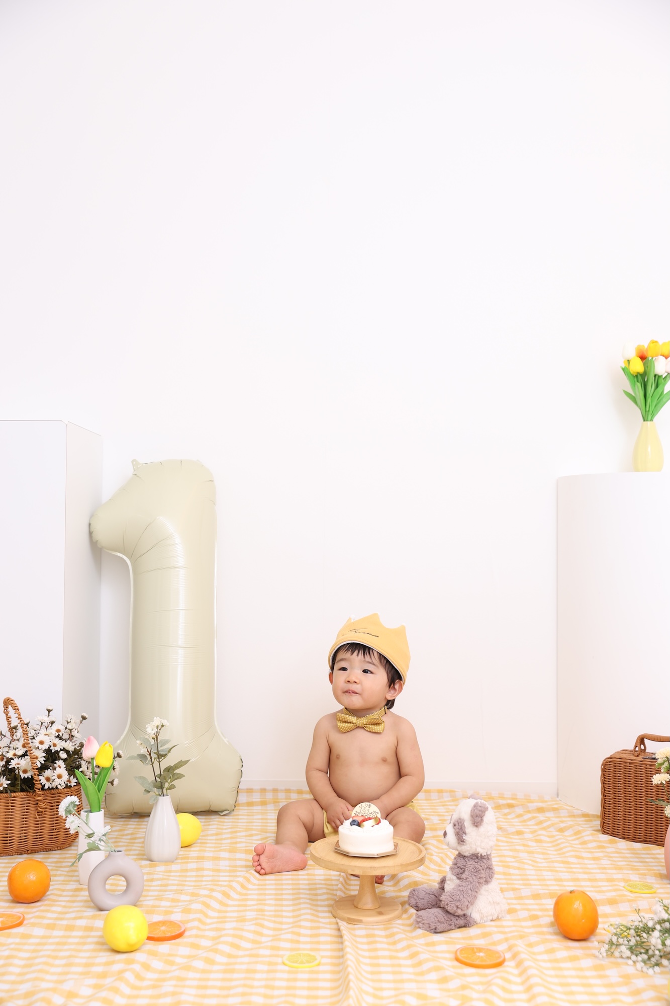 はじめてのお誕生日を迎えた男の子をご紹介♡ 撮影小物をご持参いただき、こだわりが詰まった撮影をご覧ください🎶