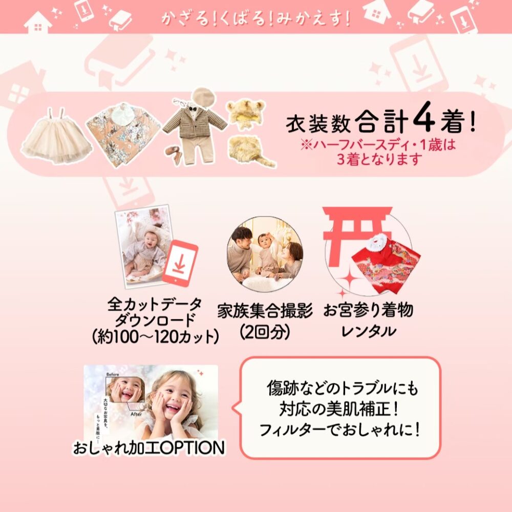 ▶︎ごきょうだいがいらっしゃる場合、1パターンを【ご家族撮影】、2パターン目を【ごきょうだい撮影】もOK!