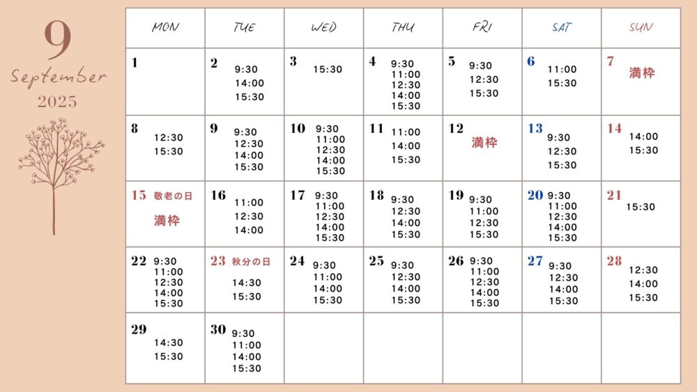 2025/09/07【土日もまだ間に合う!】9月の撮影枠空き状況を公開⭐️