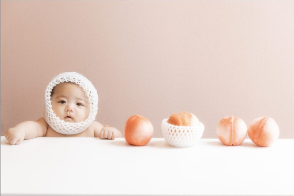 もちろんフルーツネットは新品のものを使用しているので桃の産毛が赤ちゃんの肌に干渉する心配もありません!