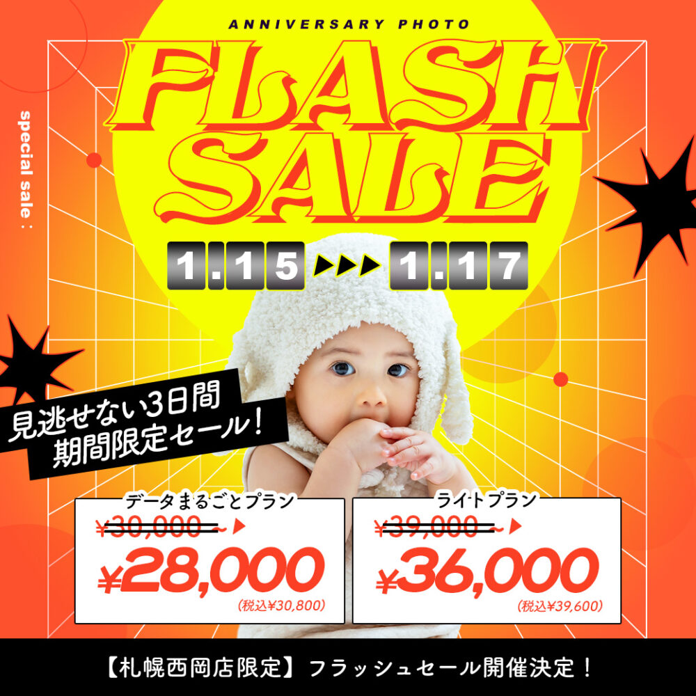 2026/01/13電撃プライス!”フラッシュセール”開催【1/15〜1/17】 / ベビーキッズ全種目記念撮影対象!【Palette+plus札幌西岡店】
