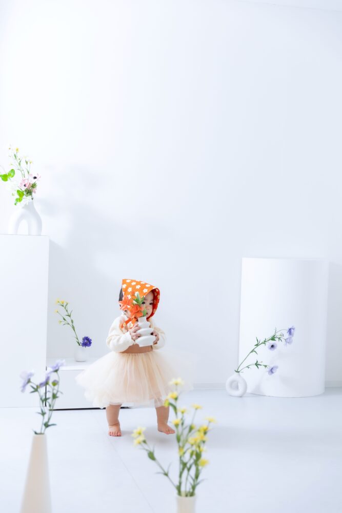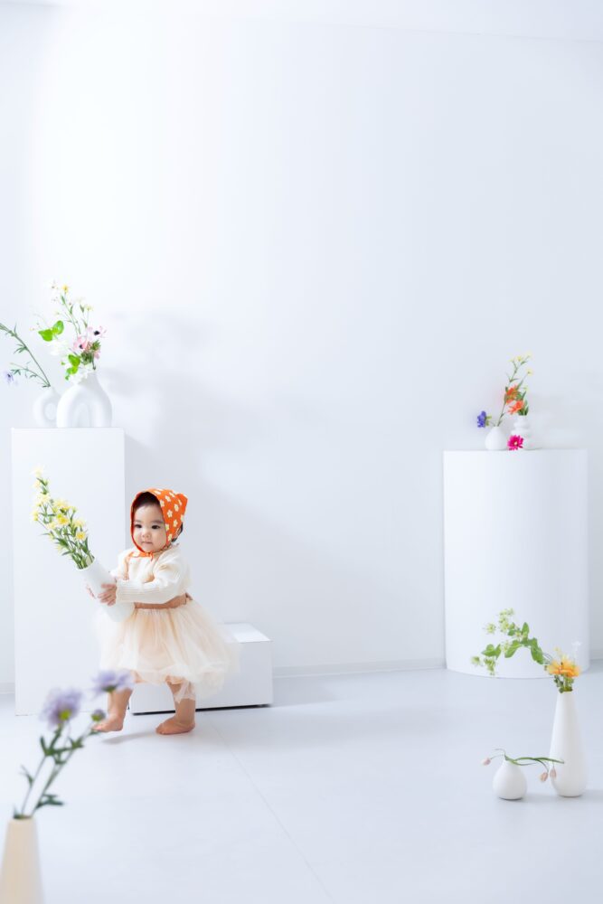 よちよち歩けるようになって歩くのが楽しい1歳記念も可愛く撮影残せます🩵