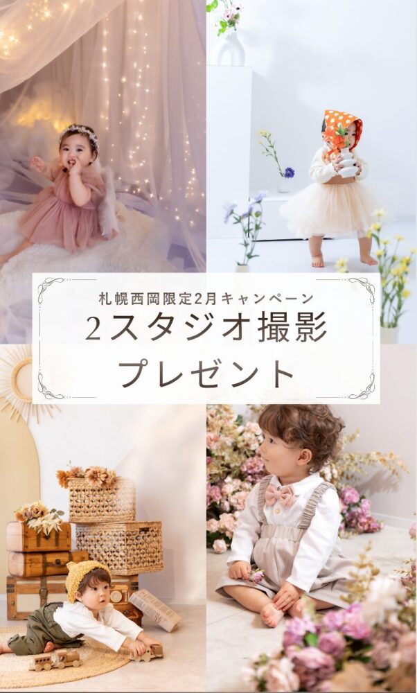 2月キャンペーンに加えて西岡店では通常1スタジオ撮影のところ2スタジオ撮影目を追加プレゼント✌️